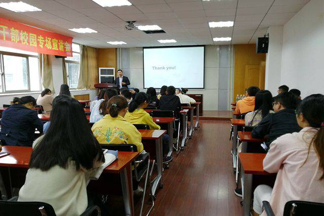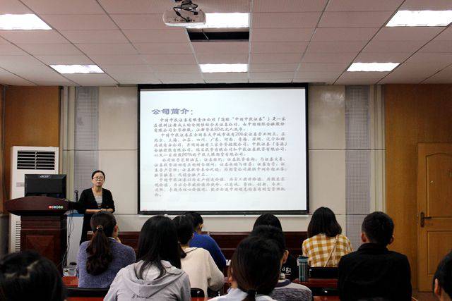 之后,中投政劵公司朱慧青对中投证券的成长历史和盈利来源作了简要介绍,并着重介绍了新员工的薪资及福利待遇,引起了同学们的广泛关注。