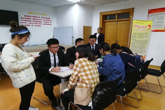 宣讲结束后,在场同学对心仪的公司投出了简历。公司负责人针对现场同学提出的问题进行了一一解答,并对投递简历的同学逐一面试,现场井然有序,气氛活跃。