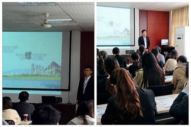 会议伊始,郭总就此次前来的公司招聘人员进行一一介绍,海螺水泥财务部部长刘剡、审计部部长助理汪许强、宣城海螺水泥公司副总会计师孙小明,枞阳海螺水泥公司总经理助理郭欣,枞阳海螺水泥公司供应处处长郭祥武,白马山水泥厂办公室副主任张瑜,海螺暹罗耐火材料公司管理部部长助理梅双龙莅临此次会议。接下来,张主任就m88官网概况、发展历程、子公司的分布、入职培训“8+1”机制、 “快乐团队,幸福海螺”的公司文化等做详细的介绍。其后,张主任就公司目标“进入世界五百强、打造年轻专业化团队”,向同学们抛出橄榄枝,邀请更多创新敢想的年轻人加入他们的团队。最后,她讲解了薪酬福利、住宿环境、招聘流程、招聘岗位及要求等毕业生较为关心的话题。