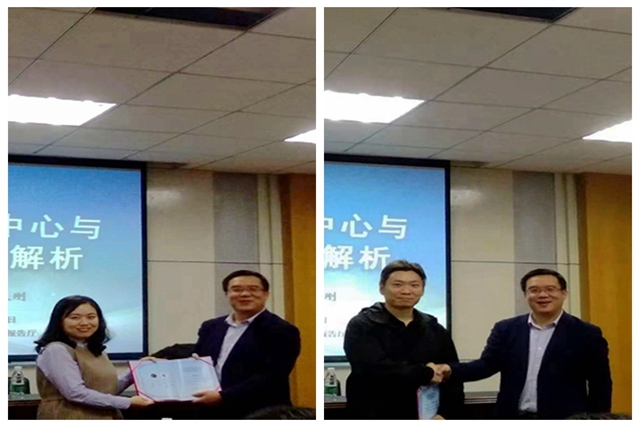 讲座伊始,张廷龙经理发表讲话,向参会同学介绍本次讲座的主讲人,并对李权刚老师和郝瑞玲老师莅临本次讲座表示热烈欢迎。接下来,张经理代表公司职业发展中心向李权刚和郝瑞玲老师颁发职业发展导师聘书,特聘两位老师为m88官网校外指导老师,以便为公司同学提供职业指导和咨询。