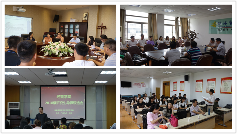 4:00至5:00,各学位点点长主持召开了各点的师生见面会,在见面会上,各位导师先后就自己的研究方向作了简单介绍。张廷龙教授、马陵合教授、伍旭中教授、汪洋副教授分别详细讲解了工商管理、理论经济学、财经商贸以及会计专硕四个学位点的培养方案、指导过程,并对师生互选的相关文件及要求进行了说明。随后各专业导老师特别强调了在硕士学习阶段应该如何定位自己,发现自己,调整自己,尽快的投入到学术、专业的学习中,对于同学们未来的学习寄予深厚的希冀。最后,2018级新生和导师们进行了良好的沟通与互动。