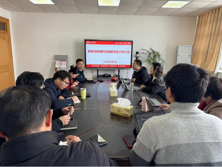 会议开始,徐飞首先强调了数智化新商科对于适应时代发展和培养创新型人才的重要性。随后,董力贤详细介绍了当前数智化新商科实践教学的建设情况,以及企业在推进教育现代化、促进校企合作方面的积极探索和成果。其他参会老师在董老师的发言过程中,适时提问,互动频繁,会场内研讨气氛十分热烈。