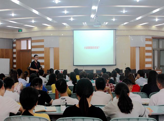 随后,王兴东经理以PPT形式就京东的企业文化、产业结构、人力资源政策、福利待遇等多个方面向同学们做了简单介绍,并现场解答了同学们的疑问。“以京东速度成长,更快达到你想要的未来。”