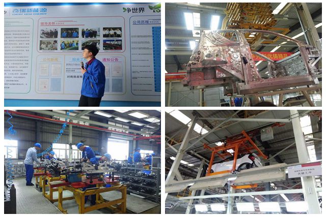 从下午3:00开始,首先,在奇瑞新能源公司潘长俊工程师的介绍下,同学们了解了奇瑞新能源汽车技术有限公司的发展现况。随后,同学们参观了公司的焊装车间、涂装pvc密封、零部件装配等生产车间,了解了汽车整车生产的全过程。接着,潘长俊工程师带领同学们参观了四辆新能源成品车,并介绍了车的性能和配备,他表明,奇瑞新能源汽车之所以具备较强竞争力,是因为公司积极响应国家的相关创新政策,奋力推进“五大创新”――科技创新、产业创新、企业创新、产品创新、市场创新,而这些都是巩固新能源汽车市场的“必需品”。最后,同学们在新能源公司前合照,参观活动圆满结束。