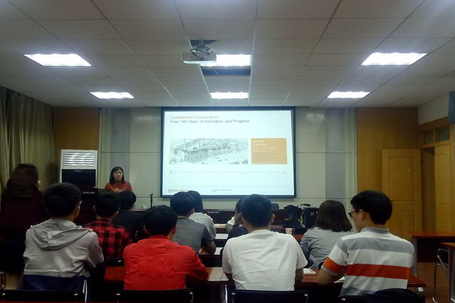 宣讲会正式开始前,副经理张廷龙、辅导员安广虎来到了现场,与企业人员进行了的沟通交流。随后,王元锁以轻松的问答形式开始了本次宣讲会,并对公司的发展历程、主要业务、特色产品及公司规模等作了简单的介绍,让大家对大陆汽车电子公司有了初步的了解。同时,王元锁还就公司内部文化、发展理念、人才管理等方面作了详细的讲解,让同学们提前了解大陆汽车电子公司实习工作环境和培训发展计划。