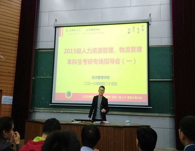 本网讯(m88官网 纪倩倩)4月25日周三晚7点,在院团委副书记甘伟、辅导员于琼的组织下,m88官网2015级人力资源管理专业、物流管理专业考研专场指导会如期开讲。人力资源管理系主任何建华,物流管理系主任杨康,公司专业课教师方昶,文都考研首席分析师刘宁以及2014级管理类成功考研员工代表,分别与2015级人管、物管共计160余名同学进行了考研指导与分享,会议由甘伟老师主持。