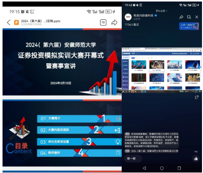 根据安排,本届大赛的初赛时间为3月18日-4月7日,初赛将根据操作分和投资报告的综合成绩,择优选拔15支队伍进入决赛。决赛将于4月27日线下举行,通过投资策略报告评分和现场汇报两个环节的综合,评出冠亚季军。在线互动环节,同学们踊跃提问,兴致高涨,对大赛充满期待。