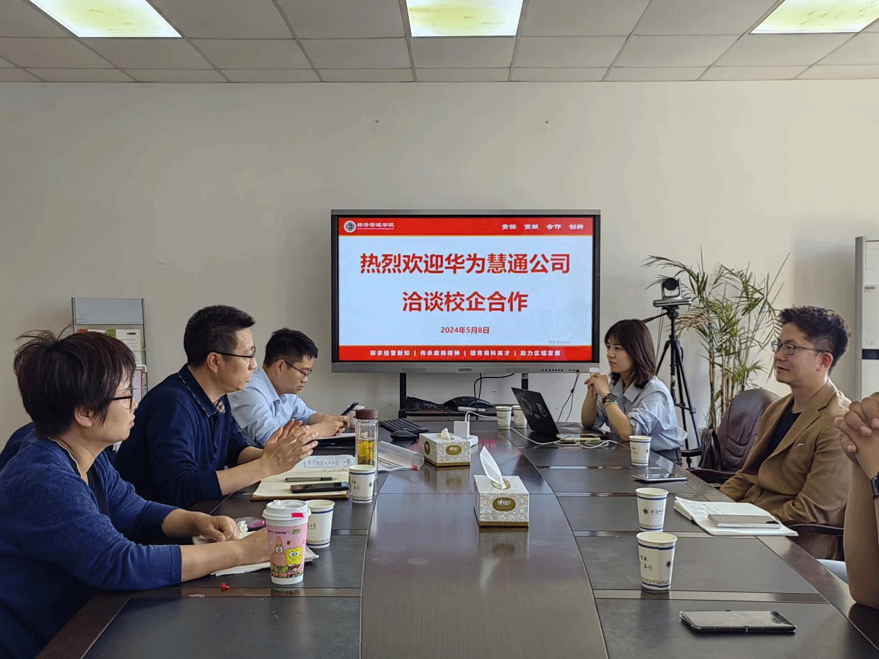 5月8日下午,华为慧通公司安徽终端合肥区域主管陈述、人力资源主管朱芳等一行来校开展实习宣讲与校企合作洽谈,公司陈刚锋副书记、徐飞老师、孙丽老师、刘胡海老师等参加宣讲会与座谈会。