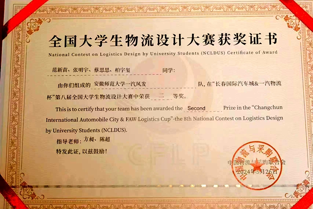 5月23日至26日,由中国物流与采购联合会主办的“长春国际汽车城&一汽物流杯”第八届全国老员工物流设计大赛决赛在长春举行。公司m88官网物流与供应链管理系主任方昶、金融工程系主任陈超、行业专家张腾指导的一汽风发队(参赛队员:范新苗、张明宇、蔡思思、柏宇玺)荣获全国二等奖,4位参赛员工取得中级物流师证书。这是公司在该项赛事上的历史性突破。