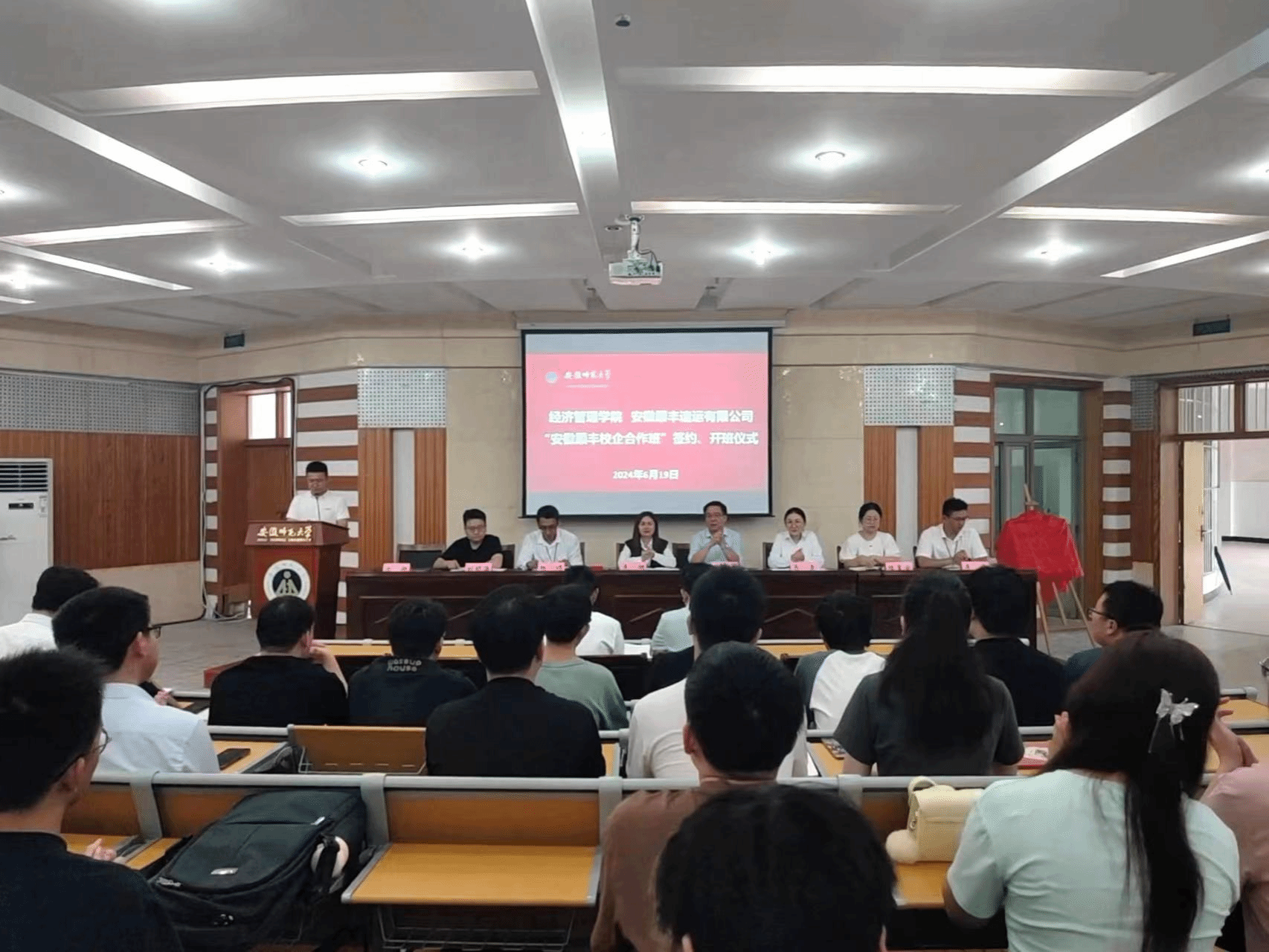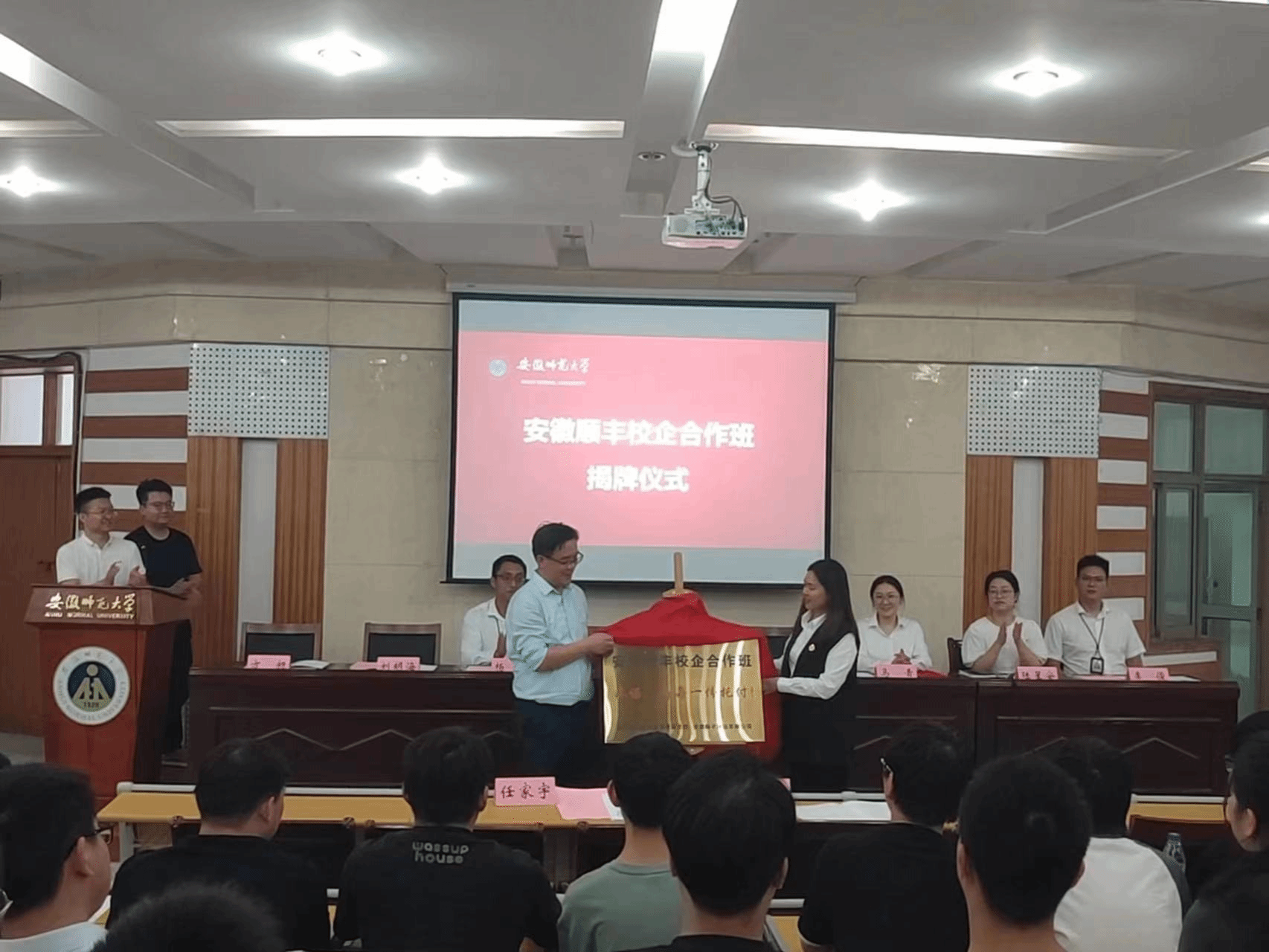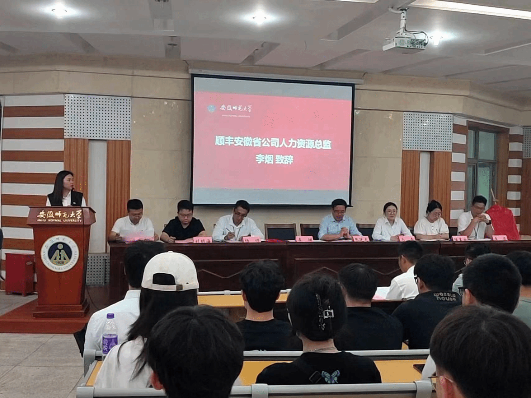 李烟代表安徽顺丰致辞。她介绍了顺丰的发展历程、企业文化以及行业地位,并表示将全力支持“顺丰班”的教学与实践活动,为同学们提供优质的实习岗位和职业发展机会。她期待通过双方的紧密合作,共同培养出更多优秀的物流管理人才,为社会和行业的发展贡献力量。