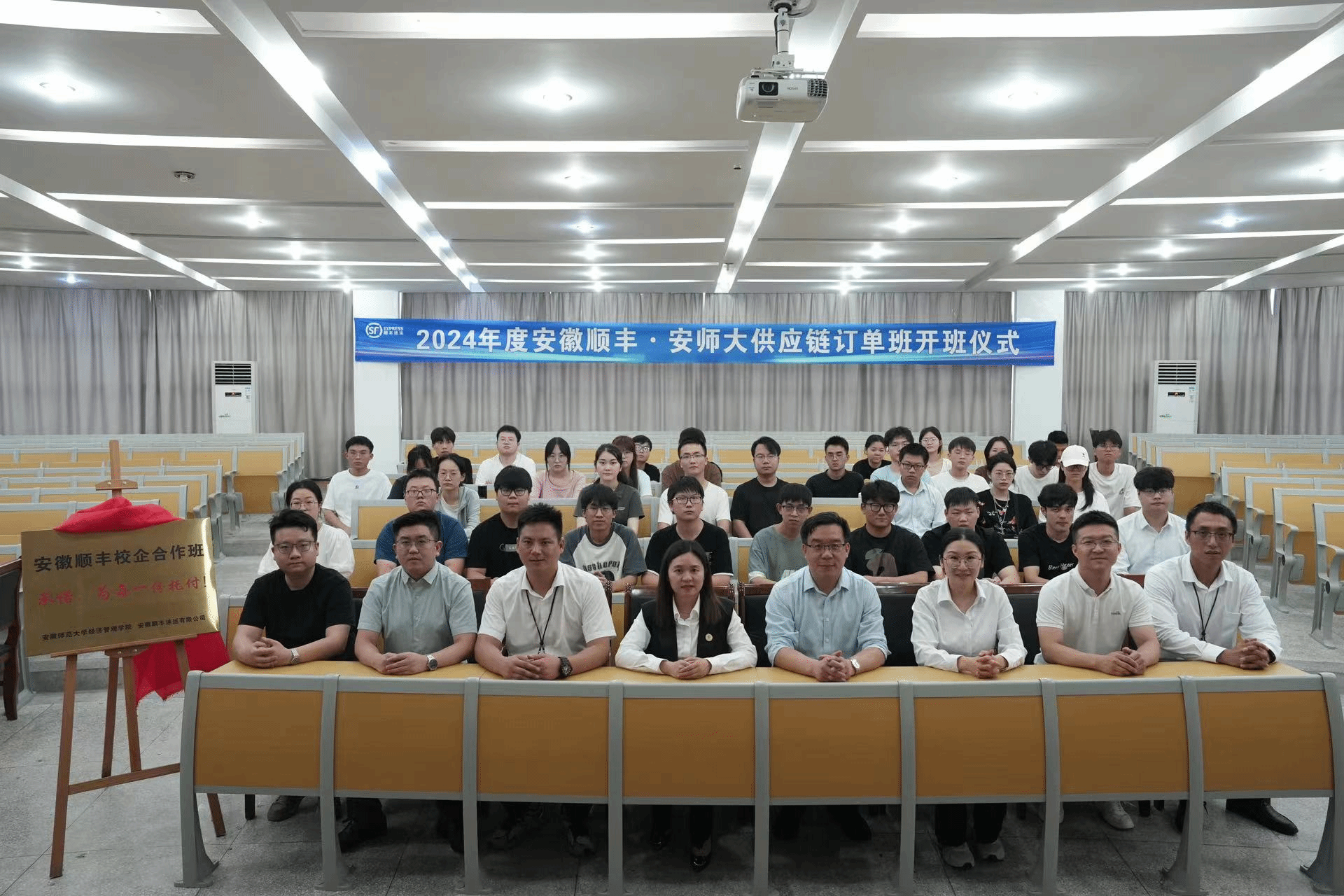 2024年6月19日下午,m88官网与安徽顺丰速运有限公司在8号楼副二楼报告厅共同举办校企合作签约暨开班仪式。安徽顺丰速运有限公司人力资源总监李烟、市场销售总监马青、运营总监陈诚、皖南区域公司负责人李俊、芜湖分公司负责人杨颂、校园项目组负责人包炜吉、人才生态与供应链负责人任家宇,m88官网经理张廷龙、供应链管理系主任方昶、辅导员刘胡海、陆星安,以及人才合作班全体学员出席仪式。仪式由方昶主持。