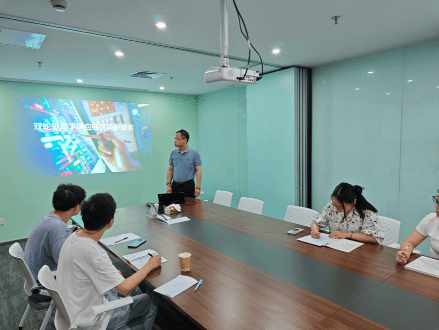 下午,在德力西公司的二期会议室,德力西电气有限公司的总经理孙茂宽亲自上阵,详细讲解了供应链各个环节的在德力西公司中运作机制,包括物料采购、库存控制、物流配送以及逆向物流等关键环节,让员工们深刻理解了供应链管理在企业运营中的核心作用。
