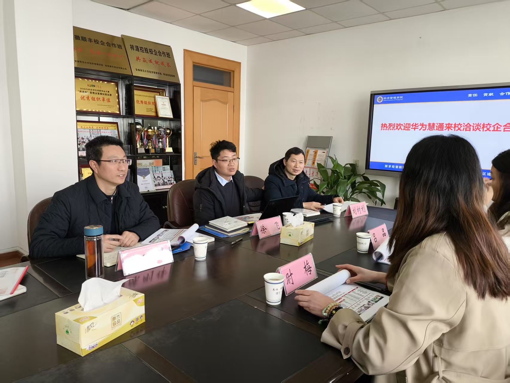 2月26日上午,深圳华为慧通商务有限公司吕品、时梅一行到m88官网就校企合作、岗位实习、人才招聘、校园活动等事宜进行深入洽谈,公司党委副书记陈刚锋、会计学专业负责人徐飞、数字经济系主任刘树利及辅导员盛亚琴出席此次洽谈会。