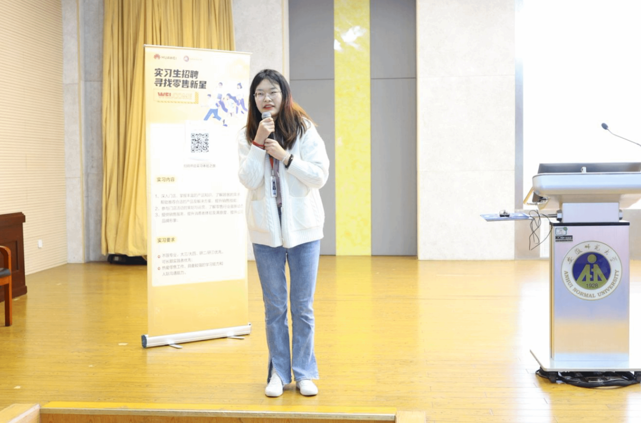 接着, 华为慧通芜铜区域手机产业负责人常鑫渝深度解读“全场景智慧生活战略”,揭秘华为终端新零售生态布局,让同学们直面行业前沿趋势。常鑫渝还详细介绍了华为慧通订单班的培养模式,订单班学员实习工作环境,以及华为慧通公司未来职业发展通道。