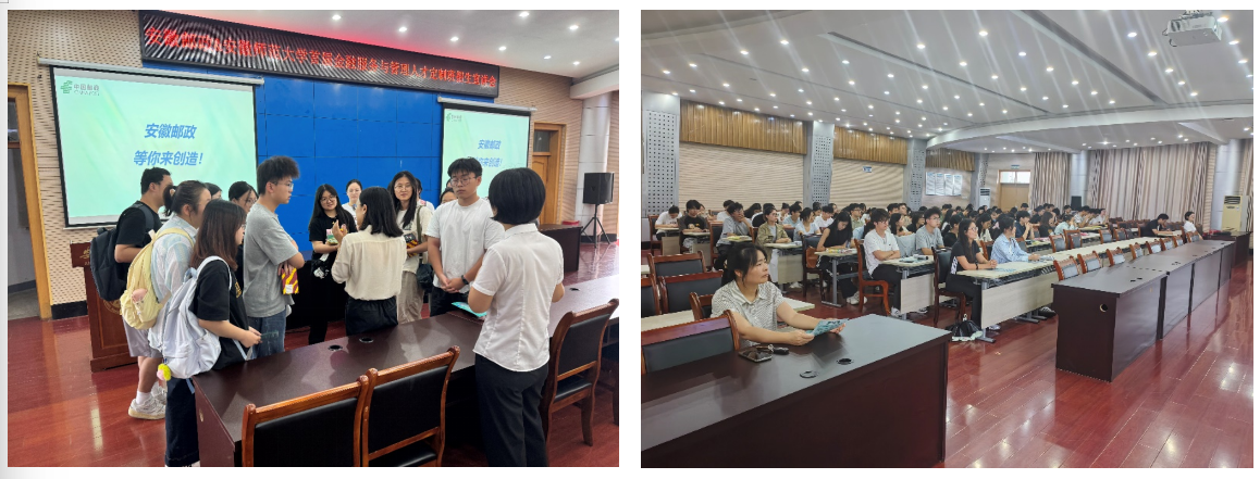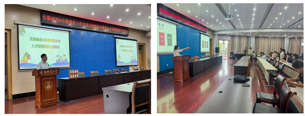9月10日,公司与安徽邮政公司首届金融服务与管理人才定制班招生宣讲会在会议中心第三会议厅成功举行,此次校企合作旨在深化产教融合、创新人才培养模式,为员工提供更精准的职业发展通道,为企业输送高素质、应用型的金融与服务管理专业人才。m88官网是本次校企合作项目承办公司,前期公司与企业密切联系联合培养方案、制定招生方案,来自化学与材料公司、数学与统计公司、物理与电子公司、m88官网等100余名本科生到场参加宣讲会。