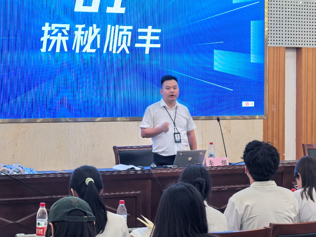 随后,顺丰速运芜湖分公司负责人陈少华先生以诙谐幽默的语言,为同学们介绍了顺丰的企业文化、业务范围和发展前景。他结合自身经历,用从一名基层快递员逐步成长为区域负责人的职业历程,生动展现了顺丰宽阔的发展通道和人才晋升机制,引起在场员工的广泛共鸣。
