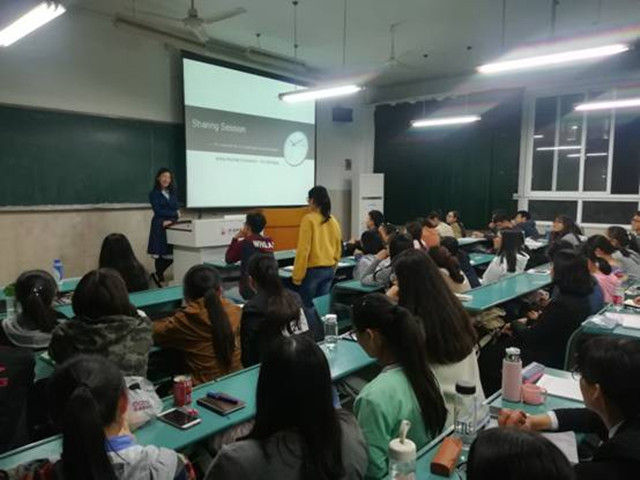 10月23日晚上,在2020501教室,大陆汽车电子公司的徐茜茜担任人力资源管理专业导论课第三讲的主讲人。徐老师不仅是大陆汽车电子公司的管理人员,也是公司2015届人力资源管理专业的员工。徐老师讲起她从毕业到现在的工作经历,详细的叙述了她工作这几年的心路历程。随后,又以“什么是HR” “HR是做什么的”“HR的六大模块分别是什么”这三个问题引入。全方位的解读HR在公司的主要职能,并向我们介绍了HR六大模块的基本内容。最后,徐老师还专门空出三十分钟时间和同学们作了更深一步的交流,班级同学主动提出自己的见解和困扰,徐老师对大家的提问作出了细致的回答。