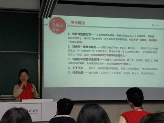 11月29日下午,在2020101教室,人管专业进行了专业导论课的第五讲学习,本次导论课有幸邀请到奇瑞新能源汽车公司人力资源总监朱华。课上,朱总监首先向我们介绍了奇瑞新能源公司的发展状况、产品的技术投入以及新能源发展的大好趋势。紧接着,围绕着人力资源管理这一中心,朱总监以"不忘初心,方得始终"开题,以自身的从业经历为导入,先后和我们讲了目标与规划、HR职能定位、发展及建议,详细阐述了人生目标与职业规划的重要性和必要性、人力资源管理这一行业对其从业者的具体要求以及人管从业者自身应具备的基本职业素养。在最后的互动环节里,朱总监结合个人生活经历与社会经验,不仅从业界前辈的角度,还从师者及父母辈面对员工、孩子的角度出发,对我班同学关于个人未来发展的疑惑作出了耐心而详尽的解答。