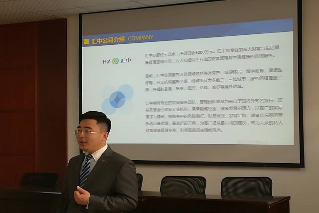 宣讲会伊始,汇中公司芜湖分公司市场主管方锐对毕业生感兴趣的三大金融系统关系和职场中的人际关系处理方法进行了讲解,随后,又从发展历程、分布地址、注册资金及经营理念等方面简要介绍了汇中公司,并围绕公司“普汇大众,财富中华”的使命,着重说明公司在财富管理、海外消费、海外置业、跨境医疗、移民留学五个领域的业务,让毕业生们对汇中公司有了更深入的了解。公司人员还对毕业生关于工作内容方面的提问进行了回答。宣讲会的最后,主持人将公司的校招笔试题分发给毕业生,并留下有意向同学们的简历,以便后续的面试。