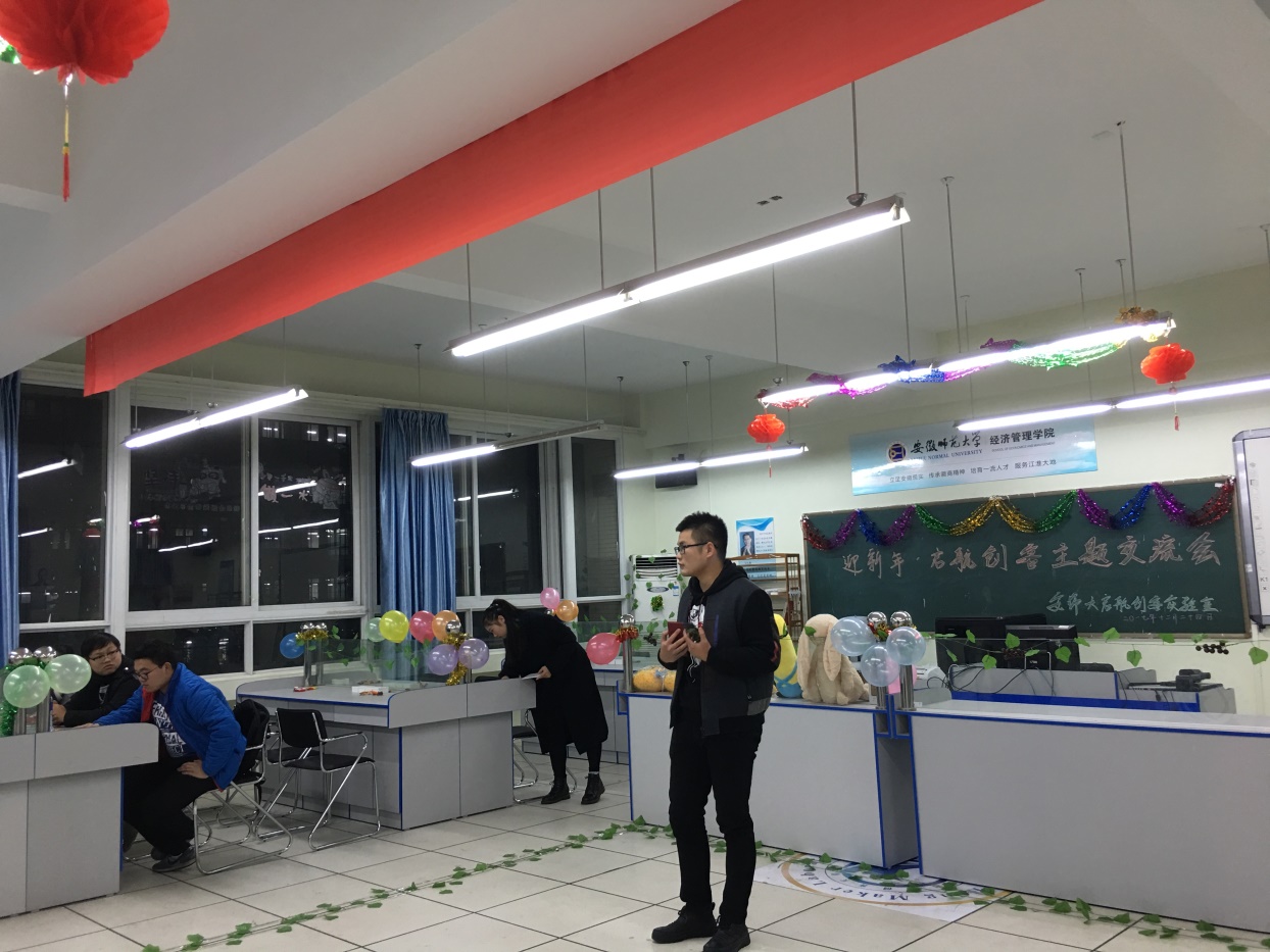 本网讯(文/宋爽爽 摄/王浩、李伟群)为积极响应李克强总理“大众创业、万众创新”的新时代发展要求,贯彻落实广大高校老员工关于学习创业知识、增强创业意识、树立创业信心、提升创业能力的政策方针。2017年12月24日晚7点,启航创客实验室于行知楼2060304举办“迎新年?启航创客主题交流会”活动。项目负责导师朱立冬、校十佳创业团队代表、创业计划大赛获奖团队代表、优秀创业团队和典型创客个人出席并参与本次活动。