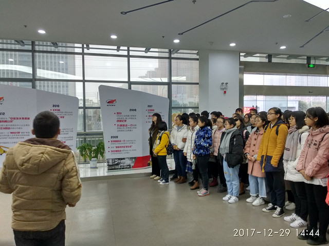 本网讯(2017级人力资源管理 靳寿鹏)2017年12月29日下午,2017级人力资源管理专业全体同学在人力资源管理专业负责人何建华、专业课老师严瑞丽和辅导员梁倩的带领下,来到了埃夫特智能装备股份有限公司进行参观学习。