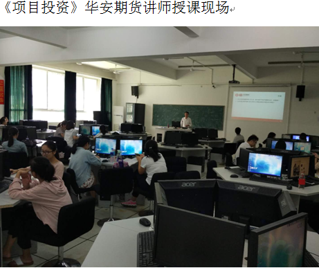 《项目投资实验课》于2017年下半年开始,与大连商品交易所的“高校人才培育活动”对接。由公司提供学分设置和课时计划以及相关课程管理工作,教学由华安期货研究院的期货交易团队的研究人员承担,负责《期货交易知识与操作实务》的系列培训课程,将项目投资实验课设计为专题式的应用操作课程,更深化了教学内容,丰富了教学设计。