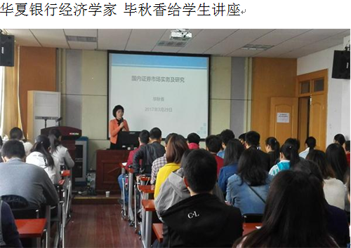 除了课程内的学术讲座之外,自2016版培养方案实施以来,在业界还邀请了一些专家进行讲座,开拓员工的专业视野,提升专业学习的积极性,提高课题公司效果。如邀请广发证券股份有限公司高级研究员毕秋香博士,开展《国内证券市场实务及研究》讲座;邀请国研网市场部高颇,开展《国研网数据库中的文献与数据挖掘》讲座;邀请国泰安信息技术有限公司教育部副总监、中国科公司深圳先进技术研究院副教授詹晓雅博士,开展《大数据时代下如何数据库处理进行数据的处理与分析》讲座;邀请中原证券股份有限公司研究所高级研究员杨震宇博士,开展《2017年第四季度我国宏观经济和大类资产运行展望》讲座;邀请海德邦和投资公司总裁陈宝胜博士,开展《并购重组促进产业转型升级》讲座;等等。