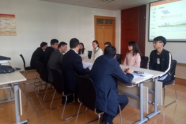 宣讲会结束后,毕业生针对三个地区的招聘计划与自身专业的契合度向相关负责人递交了简历。随后进入了初试人员的筛选环节,每五个人分为一组与面试官交谈。最终有6名员工进入了复试阶段。