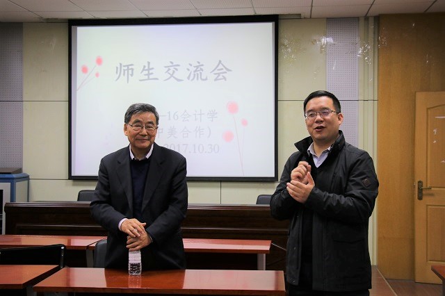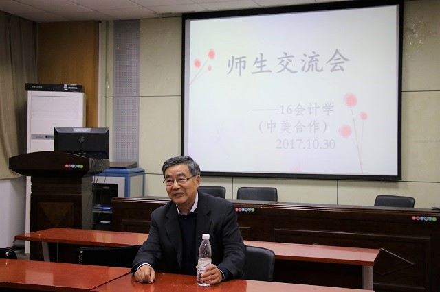本网讯(16中美会计 凌潇潇)为了解决本班同学对后期去美国留学存在的疑问,减轻大家的顾虑,进一步增强本班员工与美国西东大学负责人的交流与合作,10月30日下午5点在公司行政楼二楼报告厅,美国西东大学副董事长尹教授和本班员工进行了深入的交流。