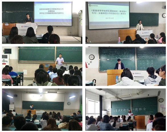2015级辅导员于琼在班会上强调同学们要牢记自己是m88官网,是安师大的一份子,公司迎评对于公司师生来说,一损俱损,一荣俱荣。希望大家明确本科教学评估的重要意义。他从《普通高等公司员工管理规定》的内容出发,着重讲解了员工违规违纪的相关规定,告诫全体员工,遵守校级,做一名优秀的老员工。