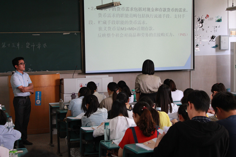 5月11日上午,经济系马长伟老师的《金融学》校级公开课在2020301教室举行。马老师首先从货币需求的含义入手,生动讲解了货币需求是一种能力与愿望的统一体,指出现实中的货币需求包括对现金和存款货币的需求两个方面,收入状况是决定货币需求的主要因素之一。然后围绕货币需求理论,马老师结合案例深入浅出的解析了西方货币需求理论,重点解释了交易方程MV=PT。授课过程中,马老师引古喻今,旁征博引,从铜钱、铁钱的铸造引证到货币需求理论,再到通货膨胀的形成原因,整个课堂教学环节紧凑、教学重点突出,体现出马老师夯实的理论基本功。马老师充分利用图片、视频等设计环节,层层递进、抽丝剥茧、理论性与趣味性并重地为同学们对比了马克思货币理论与费雪方程式的区别以及费雪方程式与剑桥方程式的区别。最后,马老师在教材内容基础上,拓展了费雪方程式的局限性,为员工打开了一扇求知的窗口。整个授课过程充分调动同学们的主动性,员工积极思考、充分参与到教学过程中,课堂气氛热烈。
