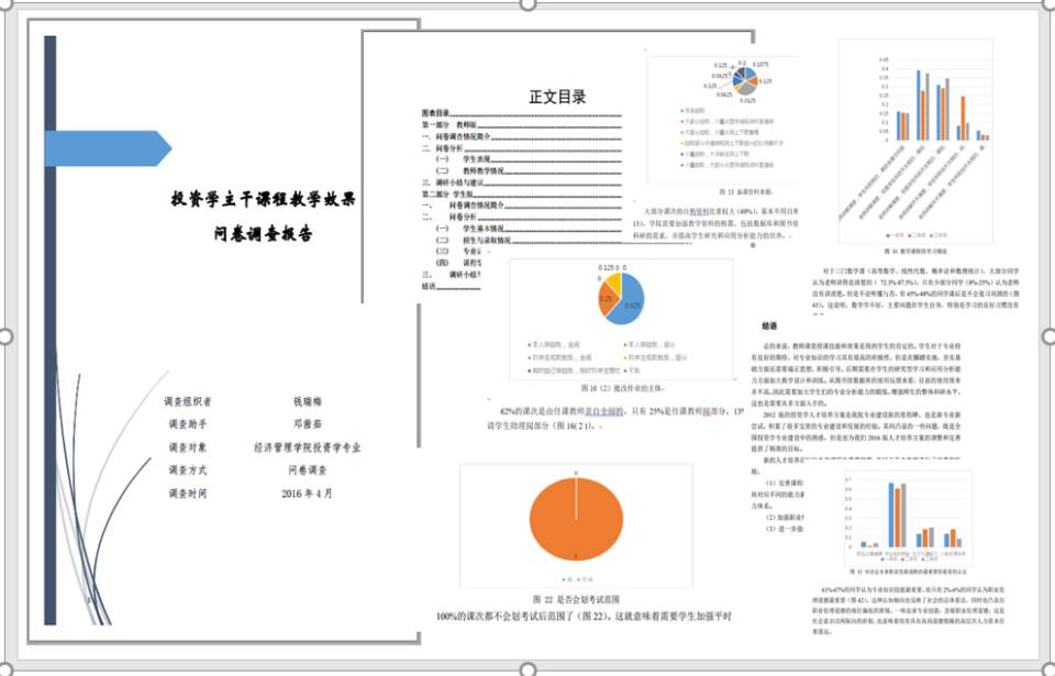 为了详细了解《投资学专业2012版人才培养方案》涉及的主干课程的实际教学效果和员工的实际学习效果,并为2016版新人才培养方案的修订和后期教学管理方案的优化提供可靠的分析依据,由投资学专业负责人钱瑞梅老师总负责,14级理论经济学研究生邓茜茹同学协助,于2016年开展了《投资学主干课程教学效果问卷调查》活动。本次调查涉及m88官网的15位授课教师、21门课次;涉及2013、2014、2015级投资学专业共计220名同学。实际回收教师课次问卷16份、员工问卷212份,有效回收率分别为76%和96.36%。为获得真实可靠的信息,问卷以匿名方式进行填写。研究结果以《投资学主干课程教学效果问卷调查报告》的形式书面提交公司。