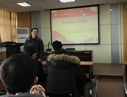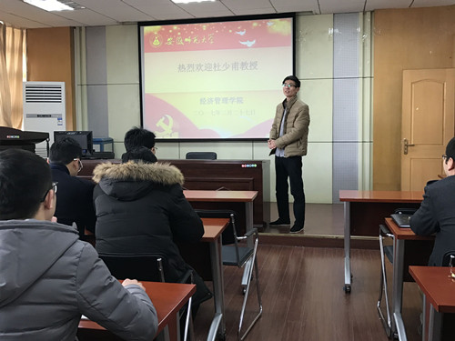(本网讯 m88官网 齐钰)2017年2月27日上午,在m88官网2楼学术报告厅,中国科学技术大学管理公司杜少甫教授应邀来公司举办 “管理研究中的一点体会”的讲座。马骥副经理和张廷龙副经理主持,朱立冬、杨康、周尔凤、胡小文等10余位老师和工商管理专业研究生聆听了此次讲座。