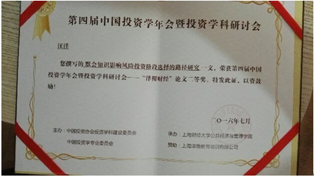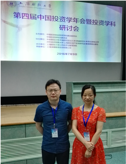 2016年7月8-10日,第四届投资学年会在上海财经大学隆重举行。公司财务会计系汪洋副教授和经济系钱瑞梅副教授应邀参加会议。 大会就“开放经济新格局下的投资管理”问题进行了热烈的讨论。汪洋老师和钱瑞梅老师也在各自的分会场宣读了自己的参会论文。其中汪洋老师的参会论文获得大会评审的二等奖,钱瑞梅老师和其导师合作撰写的论文获得大会评审三等奖。