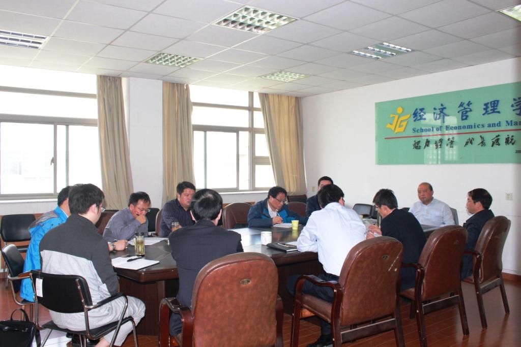 2016年4月13日中午1:30,公司召开了团队建设工作会议。经理周端明教授、教授委员会主任、教育硕士(财经商贸)学位点负责人伍旭中教授、理论经济学学位点负责人马陵合教授、工商管理学位点负责人张廷龙副经理、科研副经理马骥、刘冰教授、龚基云教授、孔庆洋教授、姚国荣教授、实验中心主任朱立冬副教授、财务管理专业负责人汪洋副教授出席了会议。会议由经理周端明主持。