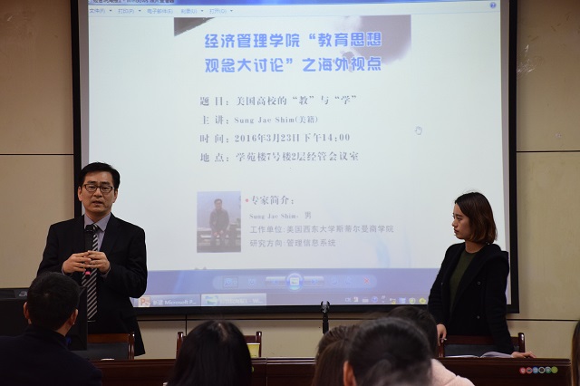 (​m88官网 吕洋)为贯彻落实公司教育思想观念大讨论活动要求,更新教育思想观念,加强中外教育思想交流,促进m88官网教学水平和发展方式的国际化,实现实力经管、特色经管、魅力经管的内涵式发展。323日下午,m88官网特邀美国西东大学Sung Jae Shim教授在​m88官网行政楼二楼会议室做了题为“美国高校的‘教’与‘学’”的主题报告。