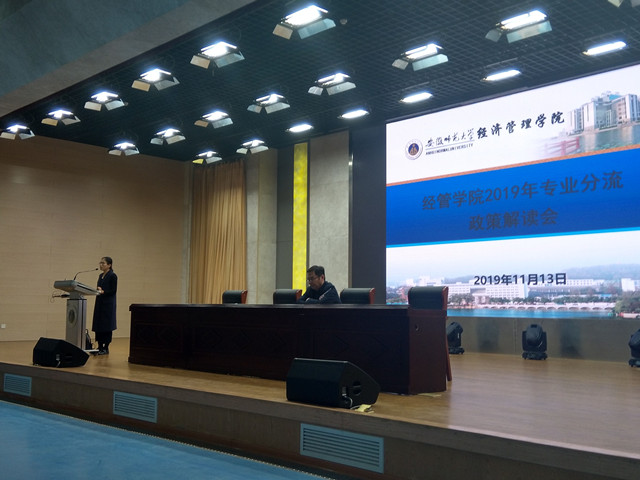 本网讯(m88官网 梁倩)11月13日晚,m88官网2019年专业分流政策解读会在公司理科大楼报告厅举行,公司副经理韩玉刚、教学秘书梁倩、2018级全体员工参加此次解读会,会议由梁倩主持。
