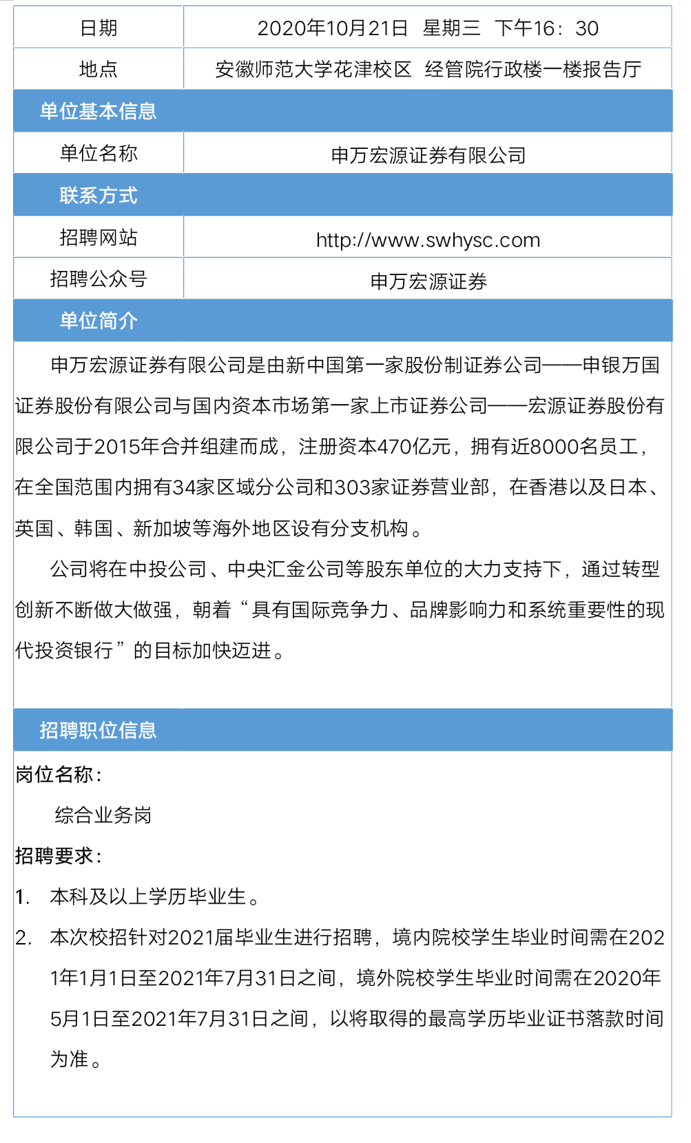 【职业发展—就业】申万宏源证券有限公司校园招聘信息