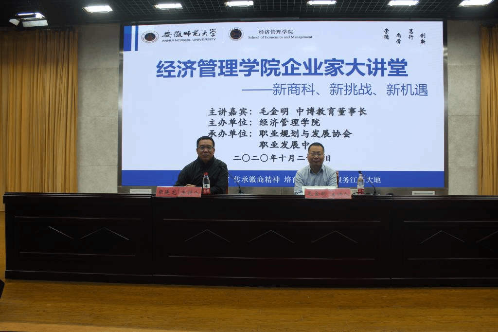 本网讯(职业规划与发展协会 文/刘婷 图/刘婷)10月21日晚m88官网企业家大讲堂于理科大楼报告厅举行。此次座谈会主讲人是中博教育创始人及董事长毛金明先生,报告会由公司张廷龙经理主持,中博教育华兵霞、杨萌涵、陈学政老师及19级全体同学参加。