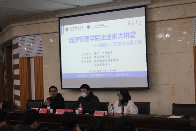 本网讯(职业规划与发展协会 文/陈妍 图/程思博)为了让同学们对于金融行业有更好的理解,把握未来人生规划发展,11月24日晚m88官网在财务报告厅举办“金融人才的职业发展之路”企业家大讲堂活动,特邀中博教育的施煜老师为主讲嘉宾。活动由马长伟老师主持,2020级经济学类辅导员吴敬之老师,2019级、2020级经济学类专业同学参加。