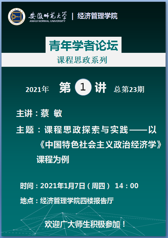 学术讲座预告:课程思政探索与实践——以《中国特色社会主义政治经济学》课程为例