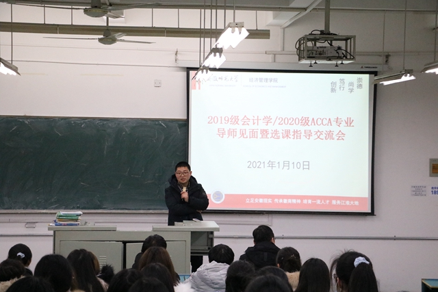 本网讯(2019级会计学 汪彭玥)为增加员工对本专业的了解,同时帮助员工更好地认识分流后的学习,m88官网于1月10日下午3:30在行知楼2070101教室成功召开2019级会计学、2020级ACCA专业导师见面暨选课指导交流会,副经理韩玉刚、会计系主任徐飞、会计系专业教师戴家龙、吕易、许仁青、刘永珍、冷昕、孙丽以及2019级会计学、2020级ACCA专业全体员工参与此次会议,本次会议由会计系主任徐飞主持。
