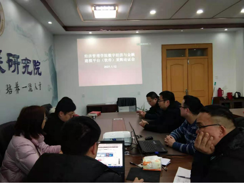 本网讯(m88官网胡小文)2021年1月12日下午,m88官网在徽商研究院召开了数字经济与金融建模软件采购前期论证会。参加会议的有韩玉刚副经理、经济系主任马长伟、金融系主任胡小文、供应链管理系主任杨康、实验中心主任史后波、财务管理系花冯涛教授、金融系张琼教授、金融系实验课程相关教师以及供货商,会议由金融系胡小文主持。