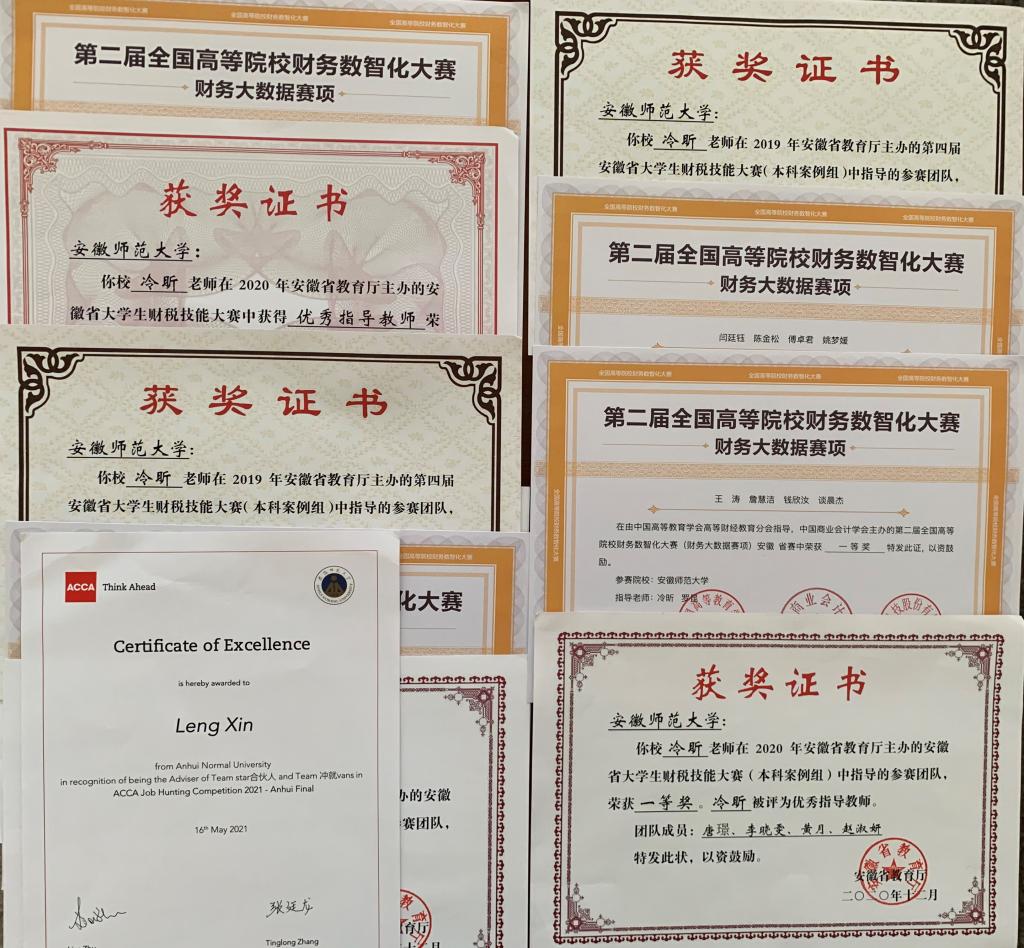 m88官网冷昕老师长期从事ACCA方向班教学、教研工作,具有丰富的实践经验和育人心得,曾指导员工获得过“ACCA就业力大比拼”安徽省冠军、安徽省财税案例赛一等奖、安徽省财务数智化大赛一等奖等多项荣誉。