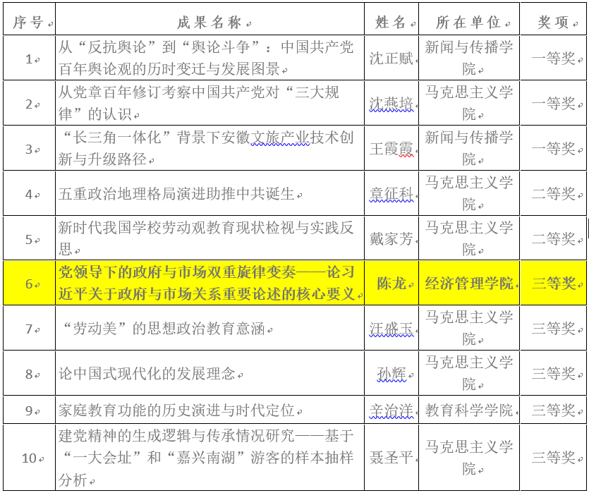 2021年12月31日,安徽省社会科学界联合会公布了《关于奖励2021年度“三项课题”研究活动优秀成果和先进单位的决定》(皖社科联字﹝2021﹞23号)评审结果,公司陈龙博士的研究论文《党领导下的政府与市场双重旋律变奏——论习近平关于政府与市场关系重要论述的核心要义》,荣获三等奖。 公司2021年度“三项课题”研究活动优秀成果获奖清单