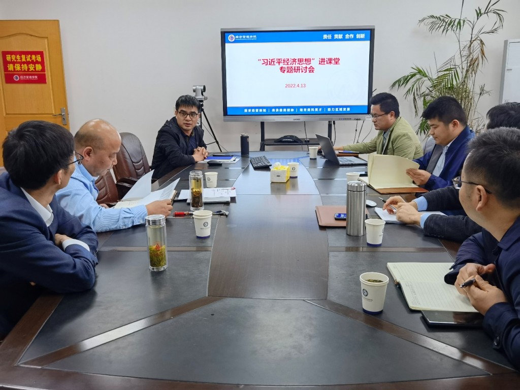 为贯彻全国教育大会和全国高校思想政治工作会议精神,坚持社会主义办学方向,落实立德树人根本任务,充分发挥课程教育在思想政治工作中的主渠道作用,m88官方网站登录地址中国特色社会主义政治经济学研究中心于4月13日在m88官网4楼会议室举办了“习近平经济思想”进课堂专题研讨会。