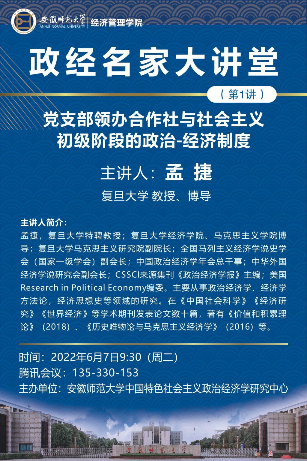 【学术讲座预告】党支部领办合作社与社会主义初级阶段的政治—经济制度