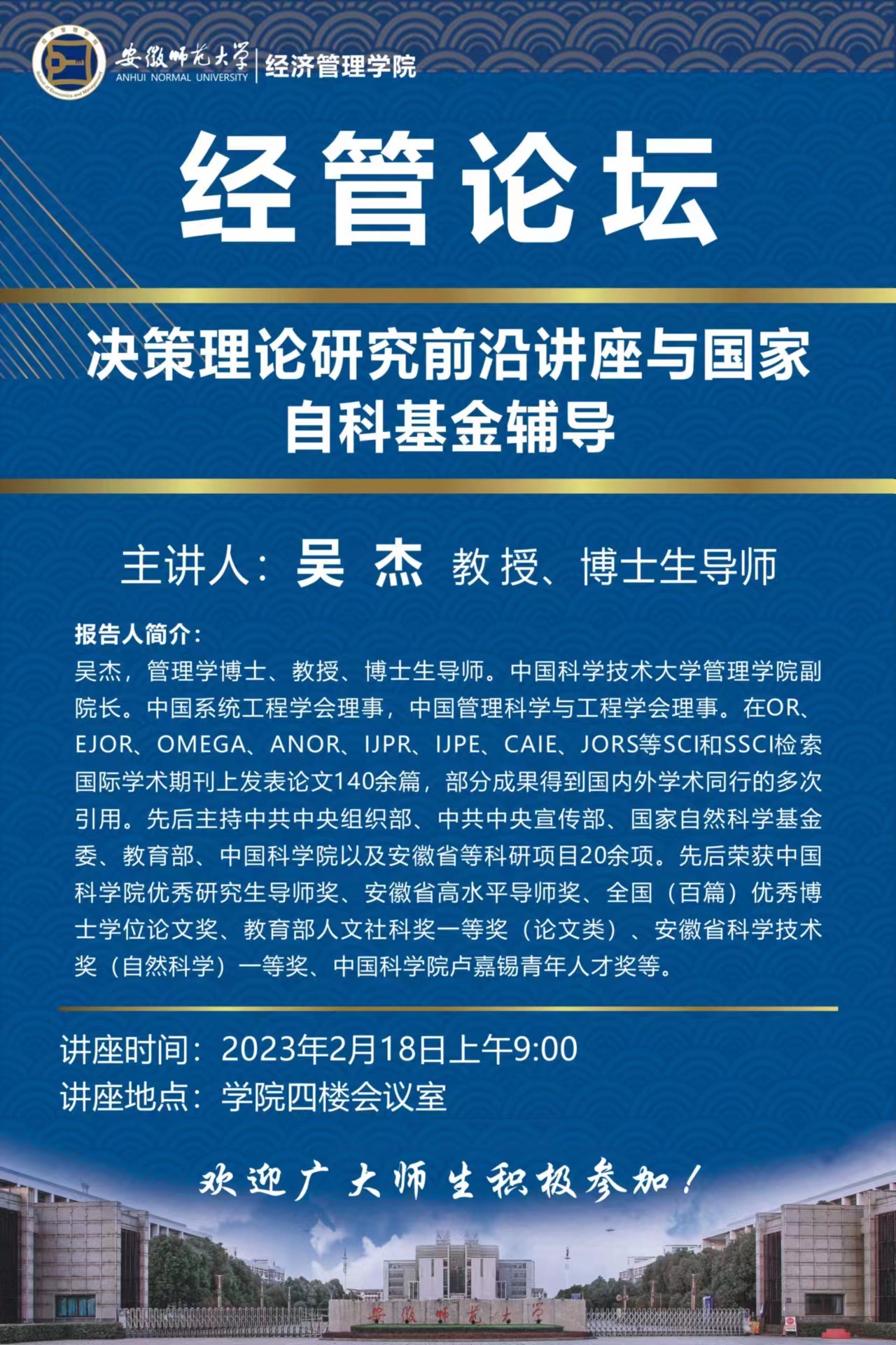 【学术讲座预告】决策理论研究前沿讲座与国家自科基金辅导