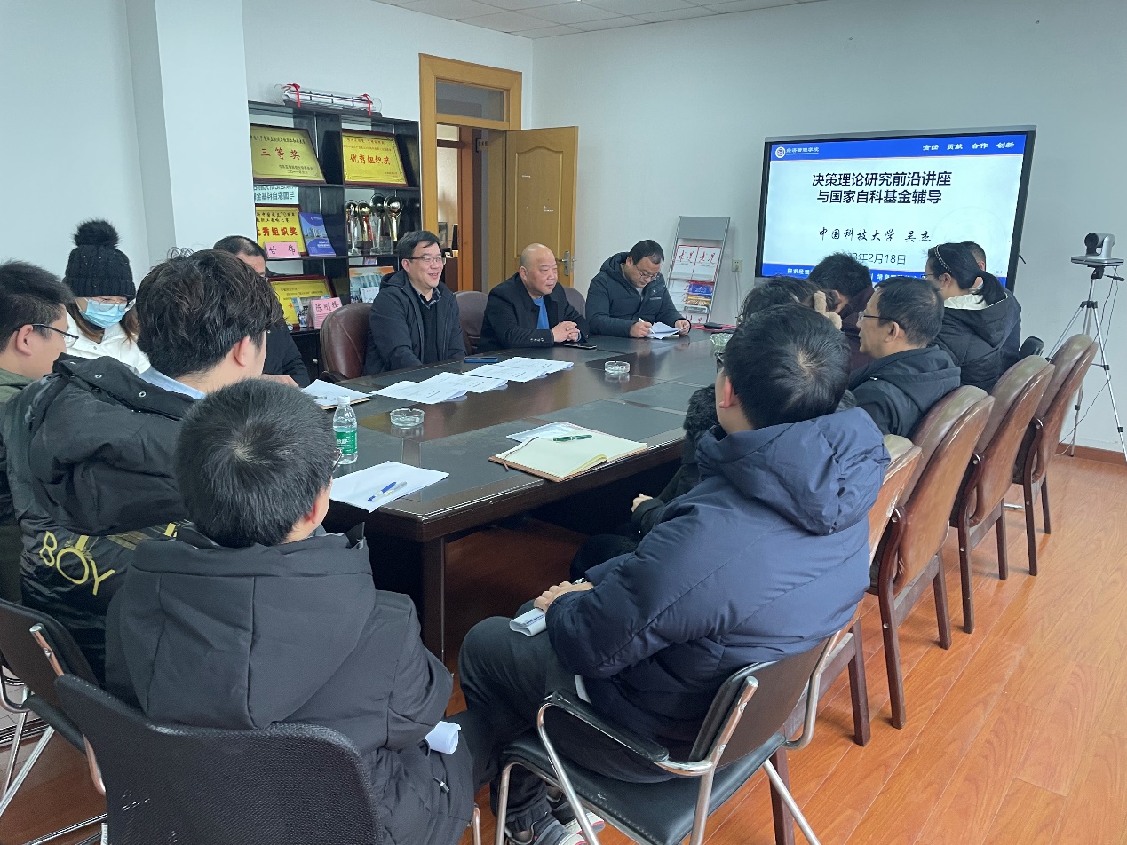 2月18日上午,m88官网邀请中国科学技术大学管理公司副经理吴杰教授在四楼会议室举行“决策理论研究前沿”专题讲座并进行国家自科基金辅导。公司教师20余人参会,会议由经理张廷龙教授主持。