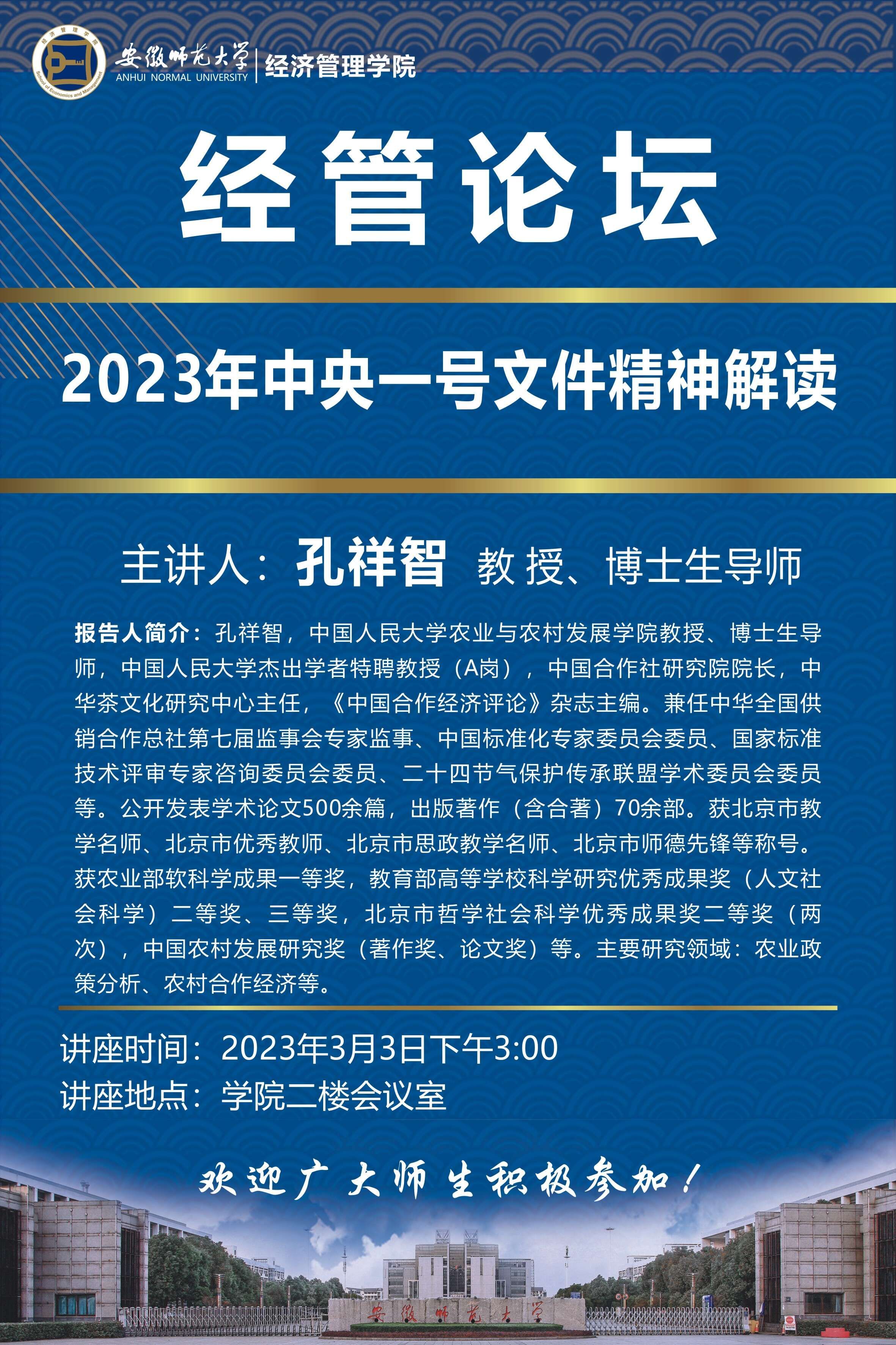 【学术讲座预告】孔祥智:2023年中央一号文件精神解读